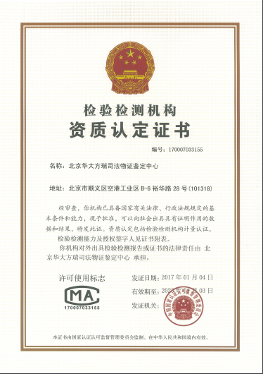 名称:北京华大方瑞司法物证鉴定中心