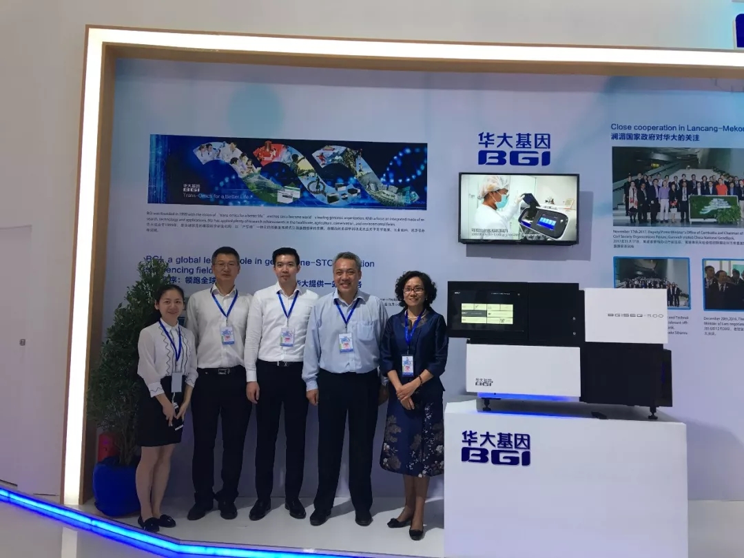 当地时间1月10日下午,国务院总理李克强在柬埔寨金边和平大厦广场与湄公河五国领导人共同参观澜沧江-湄公河合作成果展。该展览充分展示澜湄合作启动两年来取得的可喜成果及未来发展的巨大潜力。一直致力于为打造澜湄合作走廊贡献基因科技力量的华大集团集团也应邀参加了此次展览。在华大展位,华大集团集团执行副总裁余德健、华大亚太区总经理曹苏杰及企业社会责任总监陈松恒作为代表接待了李克强总理,并介绍了华大自主研发的测序仪及相关合作成果和计划。
